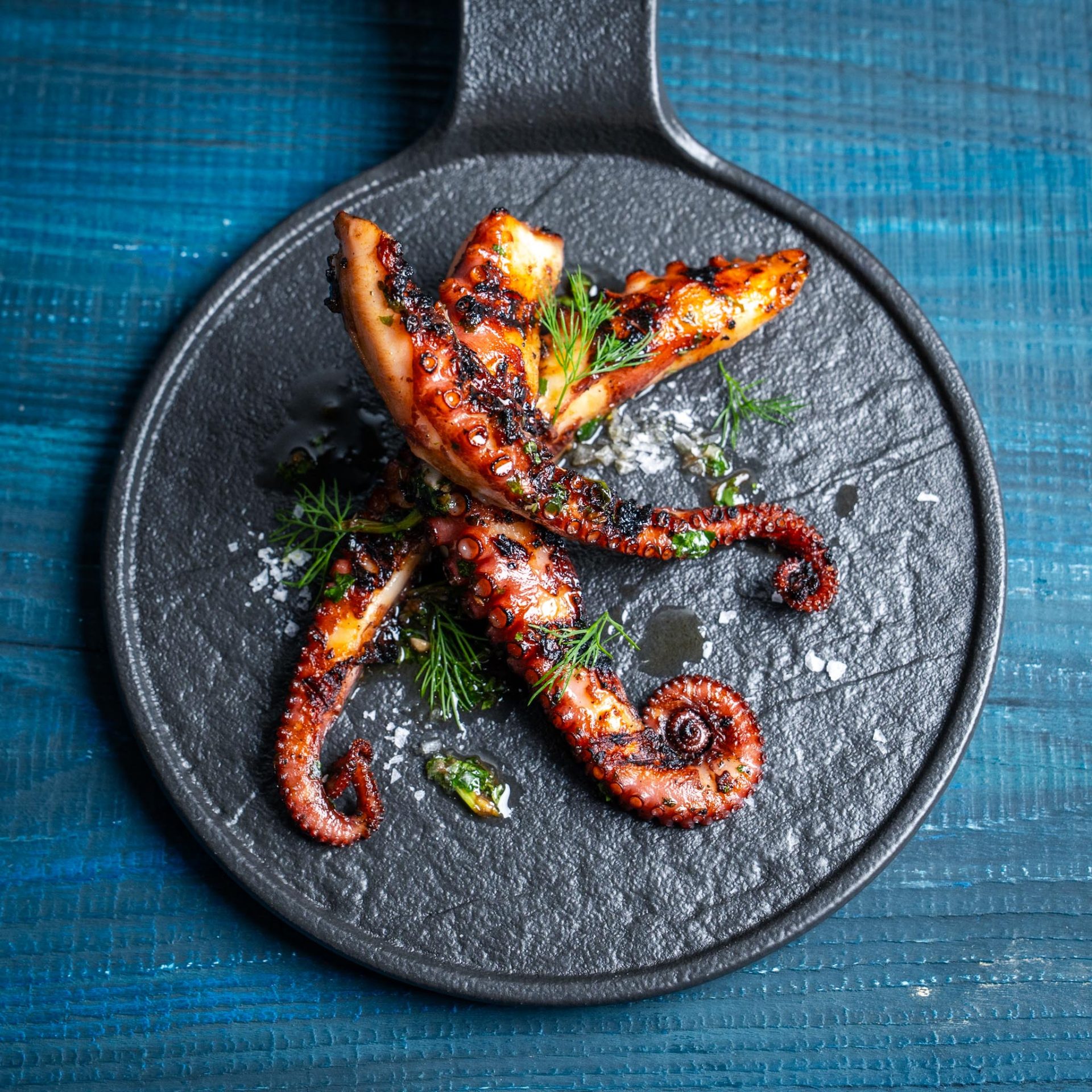 Octopus cooked on charcoal, coriander, olive oil, balsamic vinegar